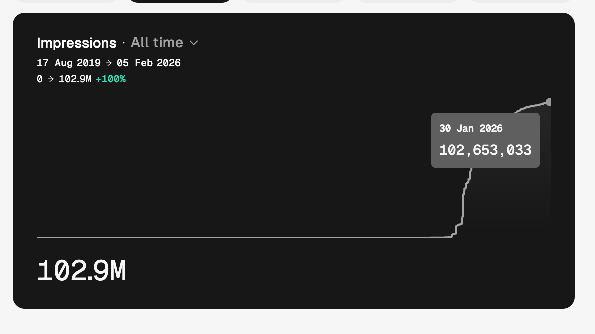 100M impressions overall on LinkedIn content (still processing that number)